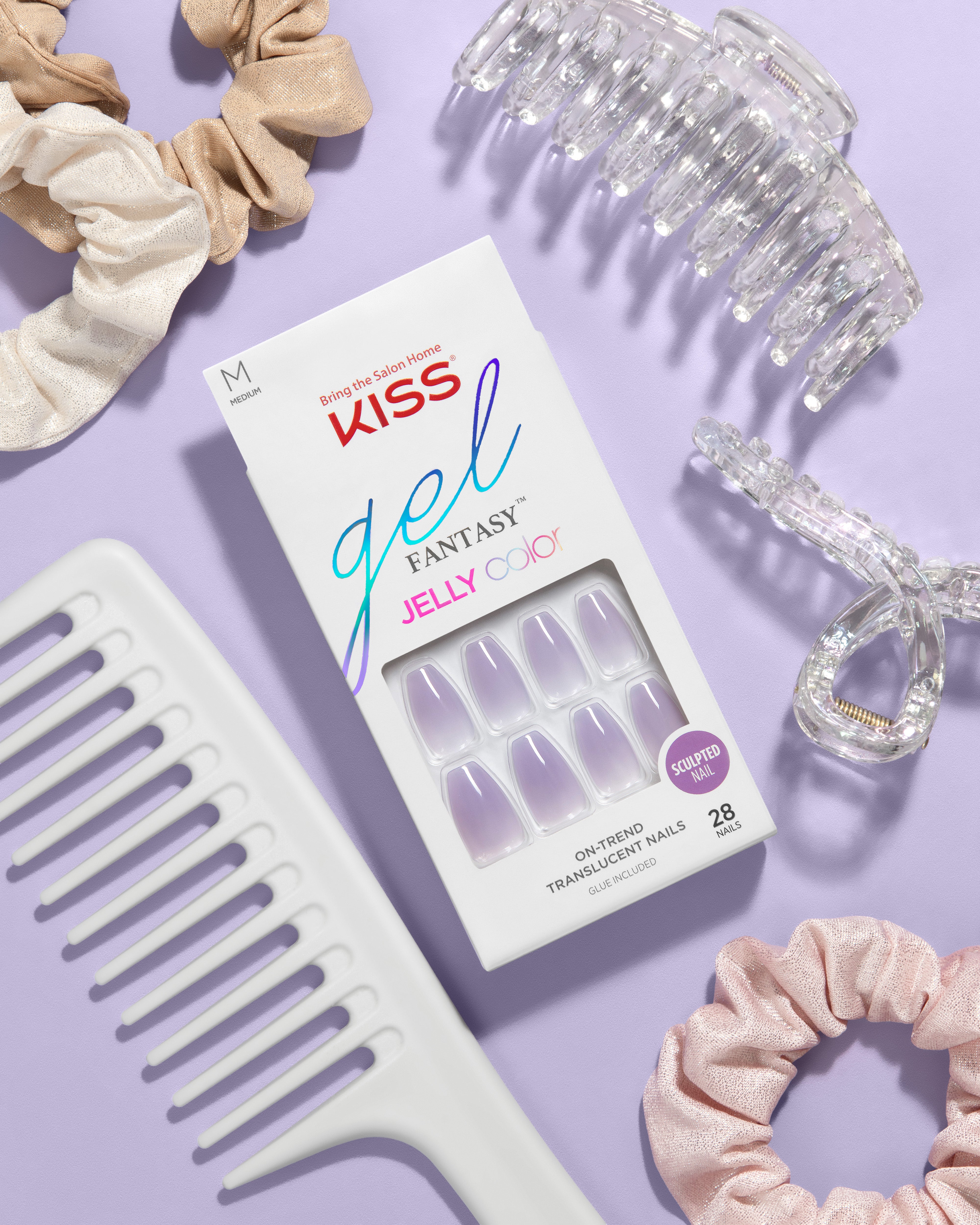 KISS Gel Fantasy Jelly Color Sculpted ready-to-wear gel finish nails now come in glossy solids with a glass-like effect that is beyond WOW! False nails in the chicest solid colors are ready-to-wear, durable, flexible, and easy to DIY.